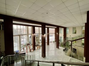 Само здание в отличном состоянии, с просторным атриумом на входе и коридорно-кабинетной системой планировки.