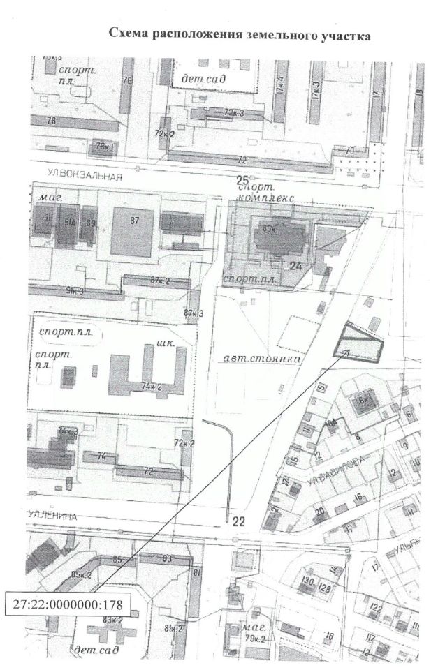 Лот 3. Земельный участок с кадастровым номером 27:22:0000000:178, площадью 2244 кв.м, имеющий местоположение: Хабаровский край, г. Комсомольск-на-Амуре, пересечение ул. Вокзальной и ул. Гамарника, вид разрешенного использования: указан в Извещении, прикрепленном во вкладке "Документы"