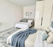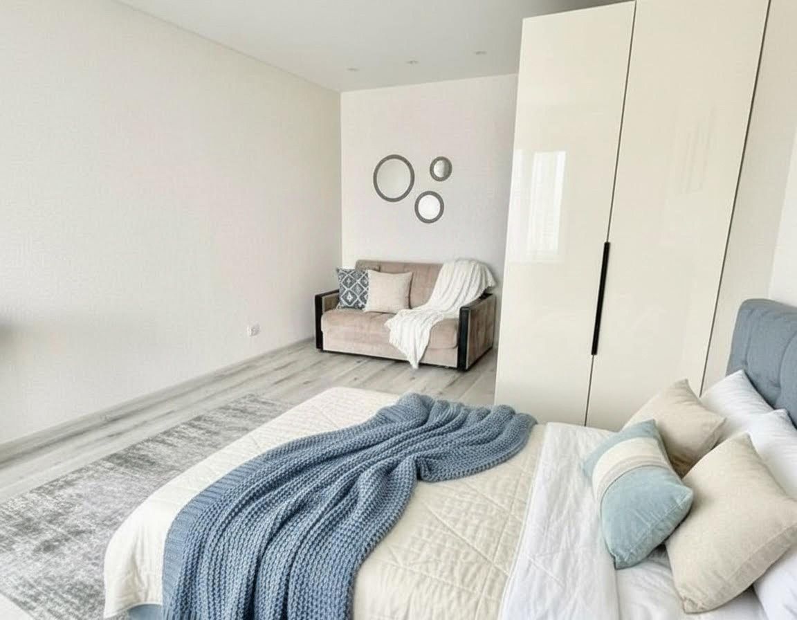 Квартира оснащена все необходимой мебелью и техникой. В квартире имеется двухспальная кровать и диван в комнате и односпальный диван на кухне. Возможно проживание с детьми любого возраста.