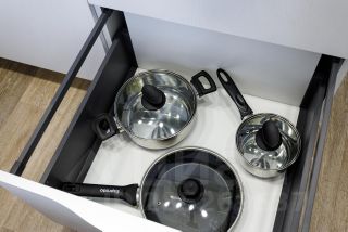 Микроволновая печь, духовой шкаф, стеклокерамическая индукционная плита, стиральная машина, титан, Smart TV, холодильник, чайник, посудомоечная машина.