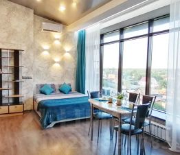 Просторная студия класса люкс не оставит вас равнодушными: панорамные окна, много света, современные техника и мебель для беззаботного отдыха!