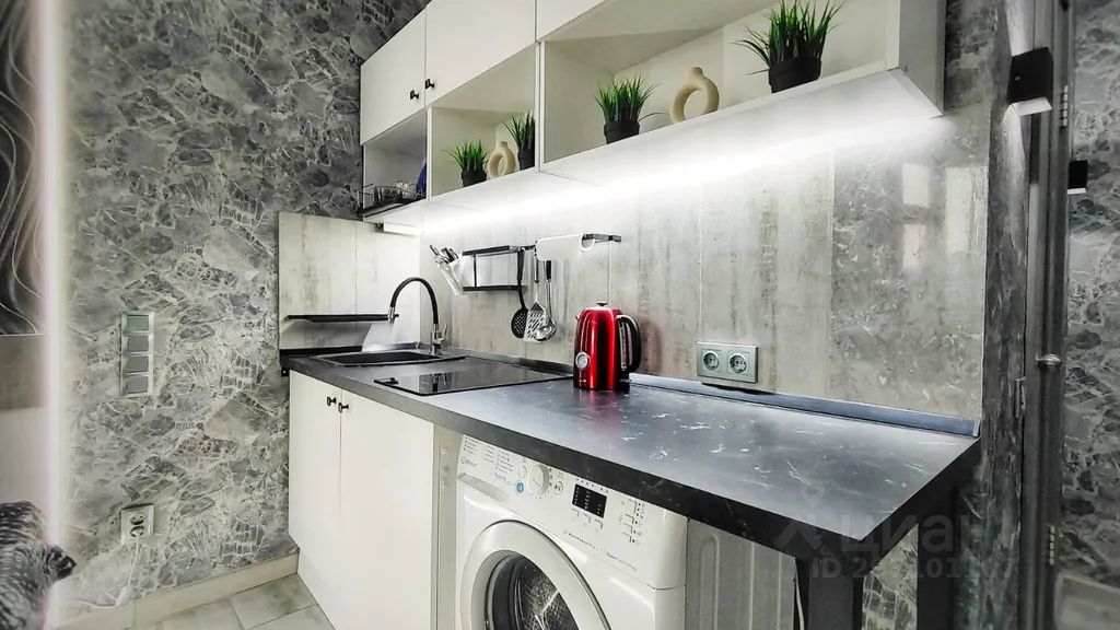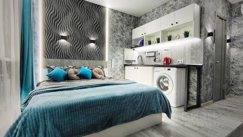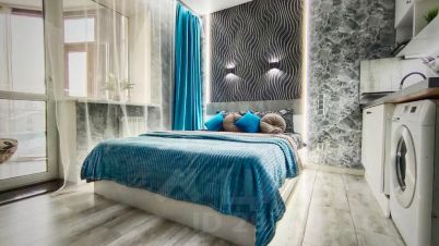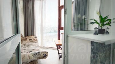 Стильная студия с лаундж-зоной на балконе ждёт своих гостей.