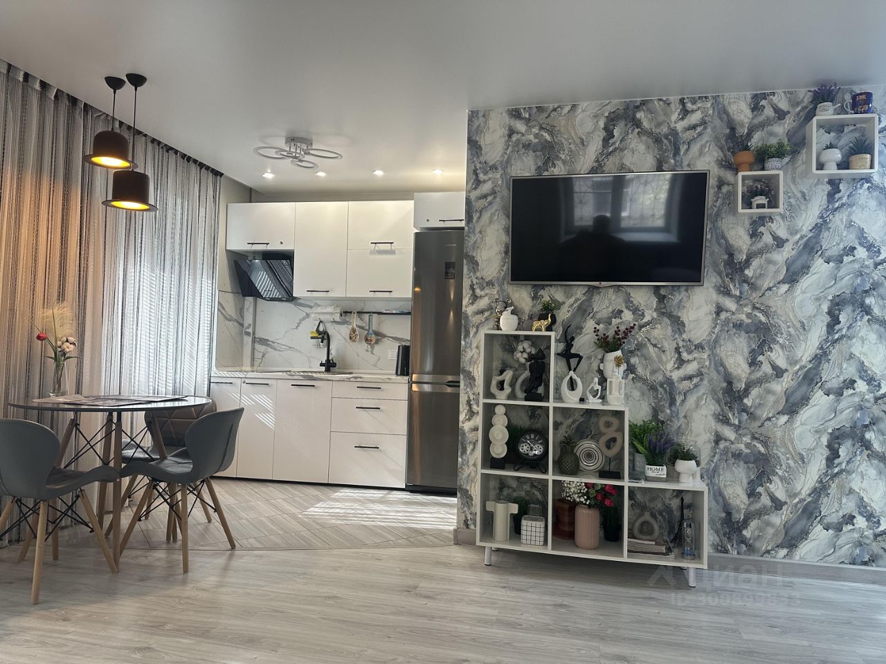 В квартире имеется, Парящая с подсветкой двух спальная кровать, раскладной диван для 2чел.