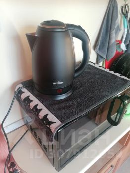 Посуда. Мебель. Бытовая техника: холодильник, телевизор, бойлер, микроволновка, стиральная машина, а также плита и чайник.