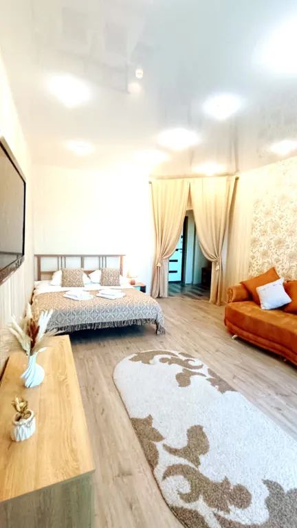 Сдается посуточно однокомнатная, шикарная квартира в лучшем районе города на 8-м этаже с тёплым балконом и панорамными окнами у спортивного комплекса "арена ерофей" под названием "кантри"