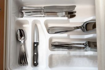 + новая столовые приборы, посуда и бокалы;