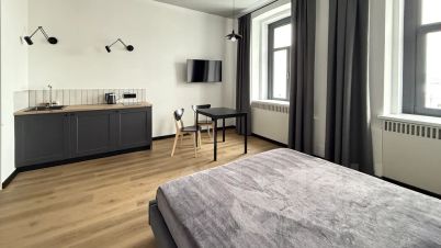 На четвёртом этаже пять отдельных апартаментов с дизайнерским ремонтом.