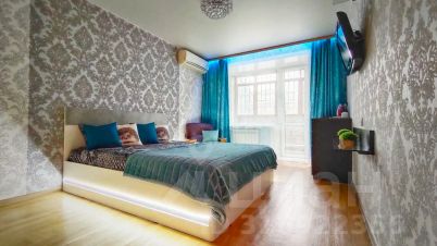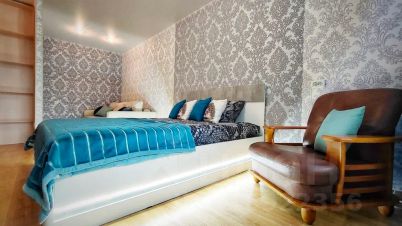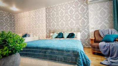 В спальне двуспальная кровать, заправленная чистым постельным бельём.