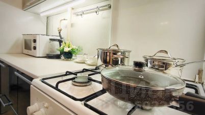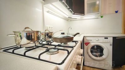 На кухне есть необходимые техника и мебель.