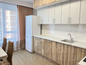 Сдается светлая квартира в аренду площадью 74.6 кв. м, расположенную на 7 этаже 8-этажной кирпичной новостройки. Планировка включает два санузла, просторную кухню, объединенную с гостиной и две непроходные спальни, в квартире еще никто не проживал.