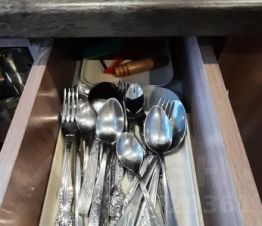 Холодильник, микроволновка, плита газовая, необходимая посуда.