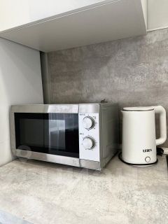 Бытовая техника:- кондиционер;- электро плита;- Холодильник;- Чайник;- Фен;- Стиральная машина.- Водонагреватель