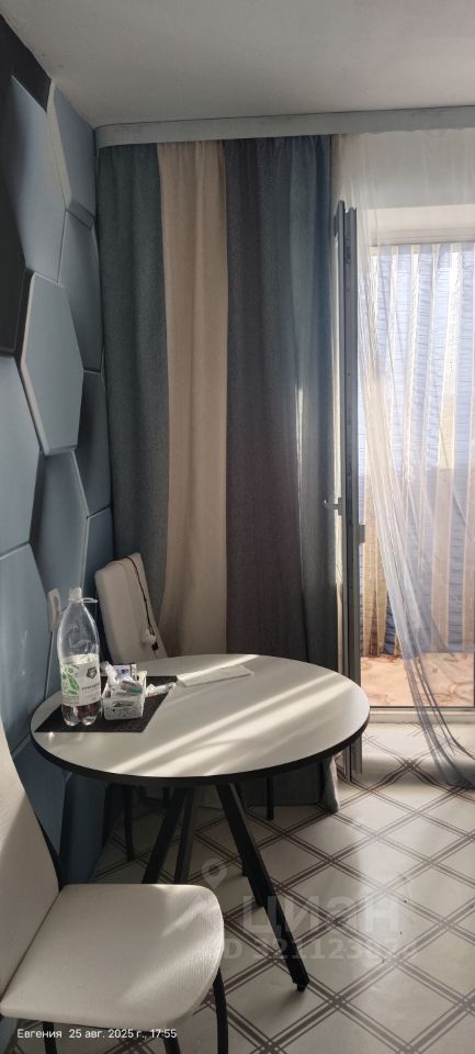 - Кухня большая просторная с выходом на балкон (застеклён), имеется: кухонный гарнитур, холодильник, плита, новый - круглый стол - 2 кожаных стула.