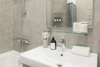 Наличие гигиенических принадлежностей: гель для душа, шампунь и кондиционер, средство для мытья посуды, стиральный порошок, аптечка и другие нужные мелочи.