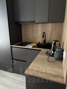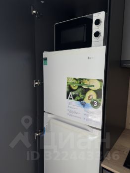 Санузел и кухня. Кухня оснащена варочной панелью, холодильником и микроволновой печью, стиральная машина, а так же есть необходимый набор посуды для быстрого приготовления и приема пищи.