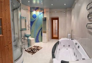 В квартире использованы натуральные материалы (дерево, натуральный камень, мрамор), никаких темных коридоров. Все помещения просторные, с высокими потолками и красивыми люстрами. МНОГО воздуха.