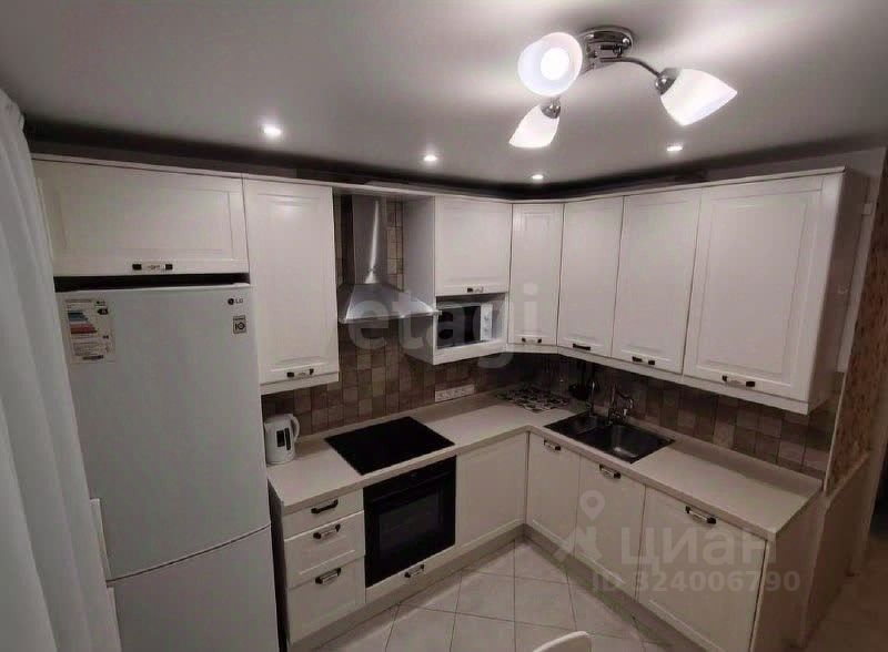 - Встроенная кухня с современной техникой (духовая печь, вытяжка, микроволновая печь, плита , посудомоечная машина, чайник, холодильник, посуда)
