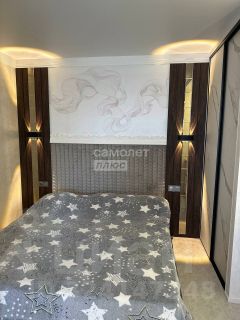 Квартира меблирована: два вместительных шкафа-купе, комод, удобная двуспальная кровать. Вся мебель новая, а свежий ремонт только подчеркивает стиль и уют этого пространства.