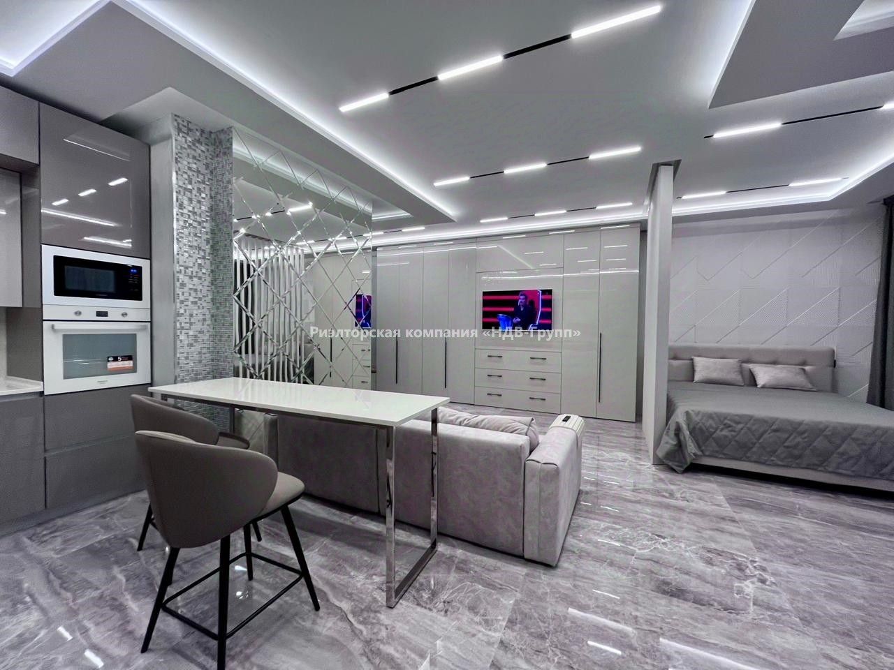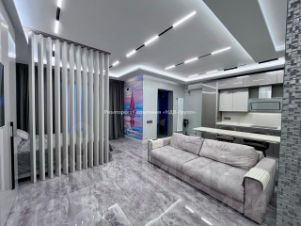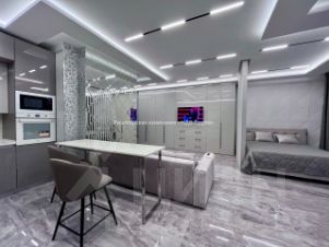 Квартира выполнена в современном стиле, сочетающем в себе элементы минимализма и роскоши. Каждая деталь интерьера продумана до мелочей, чтобы создать атмосферу комфорта и уюта.