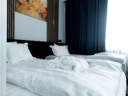 Для Гостей отель предлагает 48 номеров различной категории, от одноместного комфорта до Гранд Люкса площадью 42 кв.м. Вас ждут белоснежное постельное белье, воздушные подушки, полотенца, махровые халаты, мягкие тапочки, наборы косметических и гигиенических средств, ежедневная уборка, гладильная комната, отпариватель и комплиментарная вода при заезде. Также в каждом номере Вас ждет умная колонка "Алиса", которая является центром управления "Умным домом" в номерах.