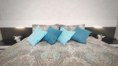 В апартаментах двуспальная кровать, заправленная к вашему приезду чистым постельным бельём, укомплектованная кухня, ТВ и wi-fi, кондиционер, отремонтированная лоджия, фен, утюг, средство гигиены и полотенца.