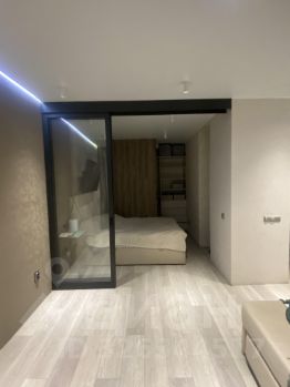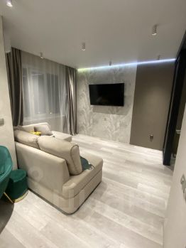 В квартире выполнен дизайнерский ремонт, что придаёт ей стиль и комфорт. Просторная кухня площадью 14 кв. м оборудована всей необходимой техникой: кондиционером, холодильником, посудомоечной машиной и телевизором. В комнате есть мебель, которая позволит вам сразу же комфортно разместиться. Санузел совмещённый, оснащён душевой кабиной. Для вашего удобства имеется и стиральная + сушильная машина (2 в 1).