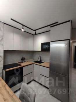 Евро- двушка ( спальня и зал совмещённый с кухней). Красивая новая мебель сделанная на заказ и встроенная техника.