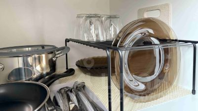 - холодильник, микроволновка, нагревательная панель, чайник, посуда