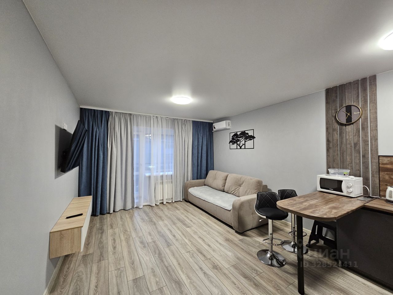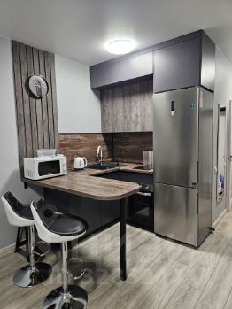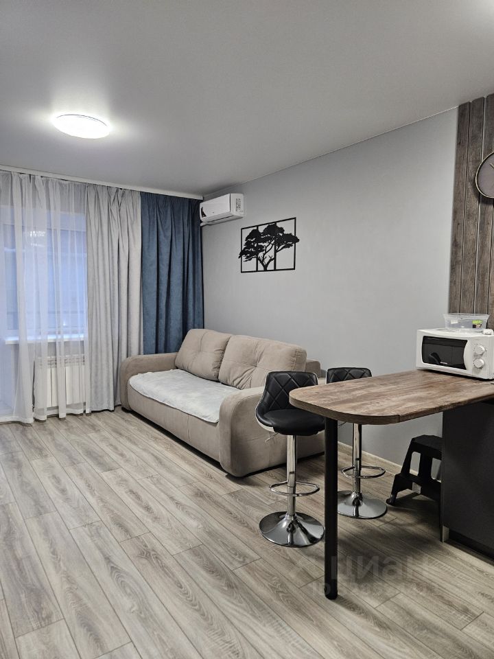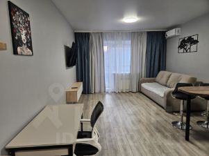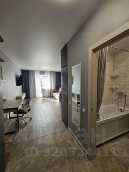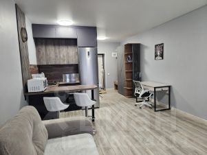 Сдаётся просторная, уютная студия с современным ремонтом на третьем этаже кирпичного дома 2024 года постройки. В сравнении со студиями площадью 25 квадратов в соседних домах реально просторнее для комфортного проживания. В квартире выполнен качественный евро ремонт, ранее никто не жил, вся обстановка новая. Кухня оборудована всем необходимым: холодильник, микроволновая печь, плита, вытяжка, духовой шкаф, чайник, посуда. Из мебели — большой диван, в разложенном виде как двухспальная кровать, письменный стол, кресло, вместительный шкаф, гардеробная.