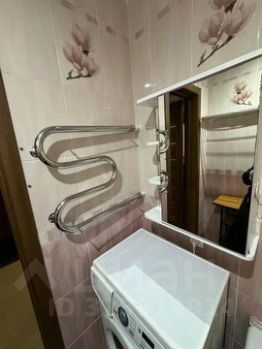 В ванной: Стиральная машина, сушилка, зеркало со шкафчиком и компактная тумба.