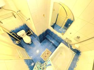 Компактная кухня оборудована всей нужной для длительного проживания бытовой техникой. В распоряжении гостей квартиры полный комплект посуды и кухонной утвари на четыре персоны, чтобы чувствовать себя как дома и готовить привычный рацион по своему вкусу.