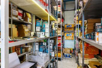 -Большой холодный склад с гаражом для автопогрузчика и бочек.