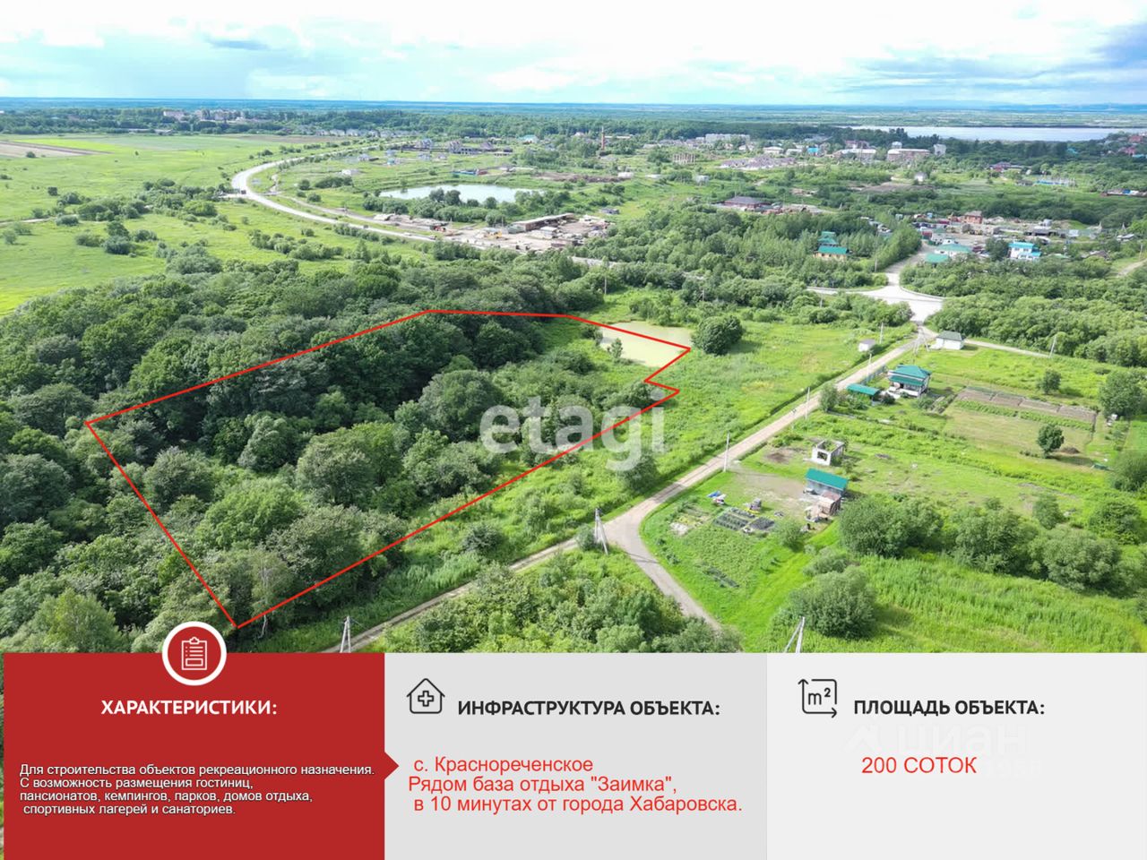 -Межевание: проведено. Сам участок находится в экологически чистом районе, за ним течет речка Матрениха - протока Амура, рядом база отдыха "Заимка", в 10 минутах от города Хабаровска.