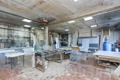 В вашем распоряжении будет 1-этажное здание, площадью 366 кв.м. с высотой потолков 3,15 м. В этом здании находилась производственная база, поэтому были проведены только необходимые коммуникации: электричество 15 кВт, но возможно увеличение и установлен отопительный котёл. Водоснабжение отсутствует, однако есть возможность заключить договор и использовать воду от водонапорной башни. Подведение газа точно также возможно, ведь в населённом пункте уже проведена газификация. Из преимуществ этого производственного помещения - это возможность достройки второго этажа или использования всей площади данного участка для новых построек.