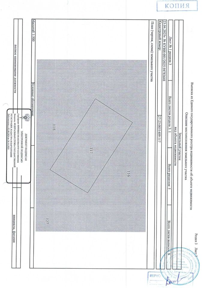 Земельный участок площадью 1017 кв.м, кадастровый номер 27:23:0051409:117. Местоположение: примерно 261 м по направлению на ю-в от ориентира жилое здание, расположенного за пределами участка, адрес ориентира: г. Хабаровск, ул. Яблоневая, д. 4Б. Регистрационный номер 531/А. Собственник Кузнец Т.Г. Начальная цена 299370 руб. (НДС не облагается). Задаток 74842,50 руб. Шаг аукциона 2993,70 руб.(ОСП по Индустриальному р-ну г. Хабаровска , , Вепрова К.С.)