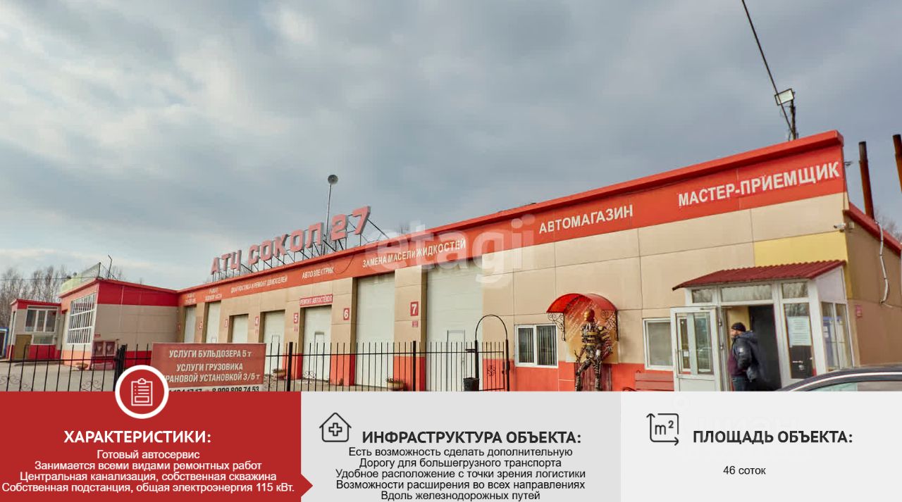 В продаже готовый автосервис, который занимается всеми видами ремонтных работ. Полностью в аренде, с оборудованием в наличии, 46 соток земли в собственности, все постройки на участке зарегистрированы. Семь ремонтных боксов - примерно по 40 м2, 250 м2 - кузовной цех, 120 м2 грузовой цех, офис - 60 м2. Из коммуникаций: центральная канализация, собственная скважина, собственная подстанция, общая электроэнергия 115 кВт. Есть возможность сделать дополнительную дорогу для большегрузного транспорта. Удобное расположение с точки зрения логистики. Возможности расширения во всех направлениях, вдоль железнодорожных путей, что позволяет планировать конец железнодорожной линии. Рядом расположена автомойка, что позволяет клиенту автосервиса после ремонта сразу помыть машину. Звоните и записывайтесь на просмотр!