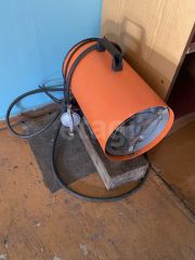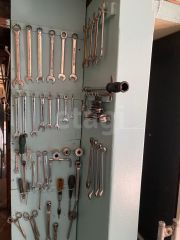 Имеется освещение, розетки по стенам, ремонтная яма (ширина 90 см, глубина 140 см, длина 300 см), подъёмник в виде двух консольных кран-балок(вылет стрелы 1,75 м), верстак, точильный станок (наждак), тиски слесарные поворотные, огнетушитель, тепловая пушка, различный инструмент, полки, столы, шкафы, остались некоторые запчасти.