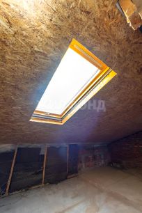 Мансарда просторна и хорошо освещена благодаря окнам на потолке. Высокие потолки создают ощущение