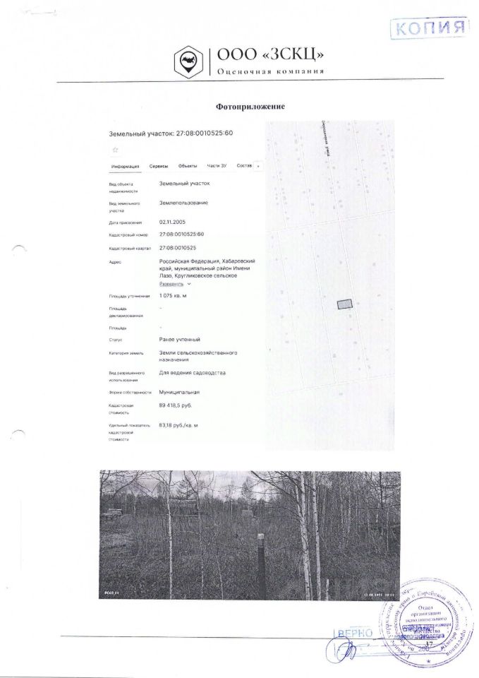Земельный участок площадью 1075 кв.м, кадастровый номер 27:08:0010525:60. Местоположение: Хабаровский край, р-н имени Лазо, п. Кругликовское, СНТ Чирки, ул. Бархатная, участок 17. Регистрационный номер 678/А. Собственник Администрация Кругликовского сельского поселения муниципального района имени Лазо Хабаровского края. Начальная цена 191590 руб. (НДС не облагается). Задаток 47897,50 руб. Шаг аукциона 1915,90 руб.(ОСП по району им. Лазо 8 9249265039 Павлюк С.А.)