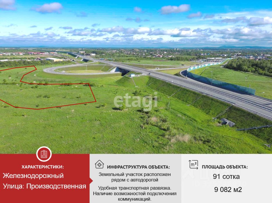 Земельный участок расположен рядом с автодорогой =Обход Хабаровска= в динамично развивающемся производственном районе. Удобная транспортная развязка. Наличие возможностей подключения коммуникаций.