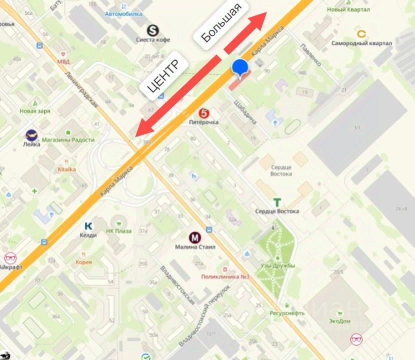 Объект расположен в центральной части города, сразу за автобусной остановкой и рядом с подземным переходом. Это гарантирует постоянный поток клиентов — как пешеходных, так и автомобильных.