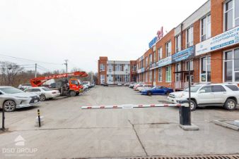 - Просторная парковочная зона перед зданием с шлагбаумом.
