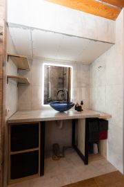 Полностью сделан предчистовой ремонт, но и много ( фактически 3/5 полностью готовые жилые помещения). По документам оформлено как ИЖС .