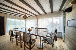 В самом здании пять этажей , включая цокольный этаж и мансардный. На каждом этаже два сан узла , отдельные комнаты и есть выходы на террасы. Прекрасный вид на озеро , лес и Амур !