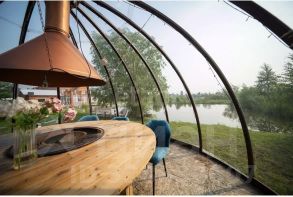 Помимо залов в помещении оборудованы беседки и купол для отдыха на природе, домик для персонала!