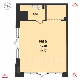 Площадь 55,1 кв.м. Помещение расположено в 2/1 секции жилого комплекса.