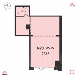 Площадь 85,38 кв.м. Помещение расположено в 1-й секции жилого комплекса.