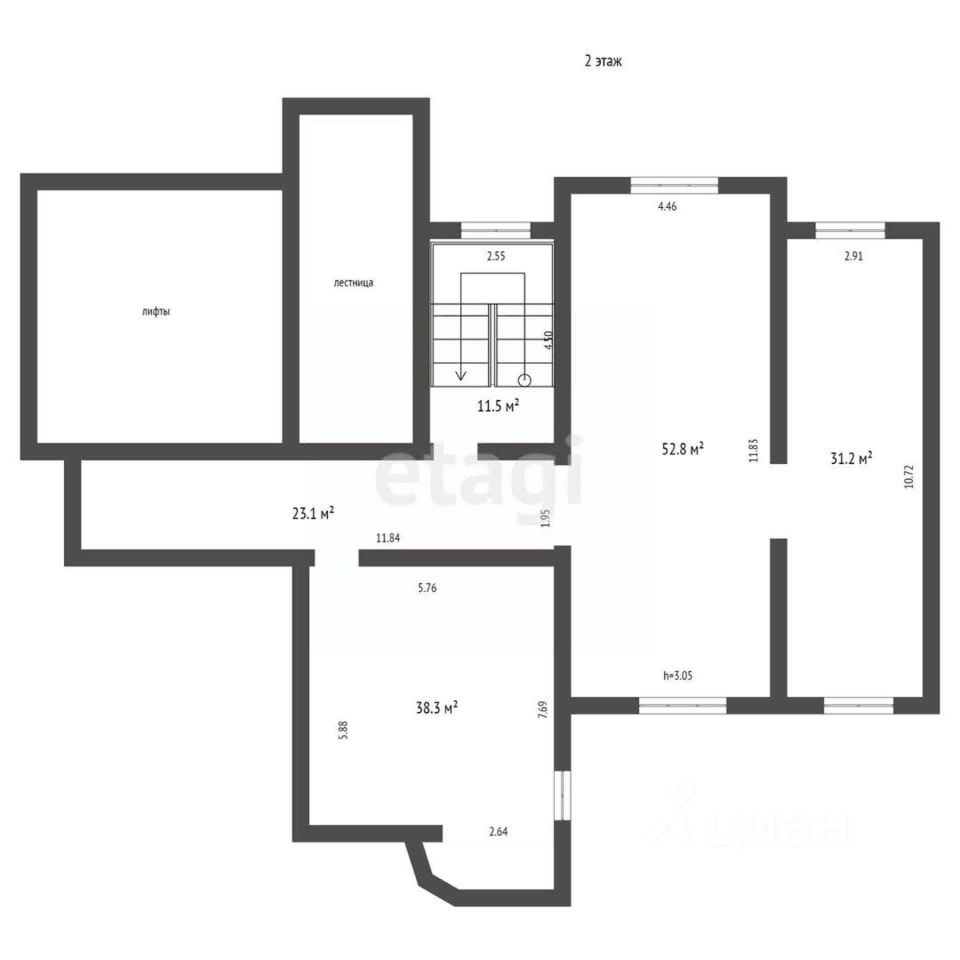 Помещение 179.7 кв.м., находится на втором этаже. Окна помещения выходят на обе стороны дома. Есть возможность пристроить лоджию.