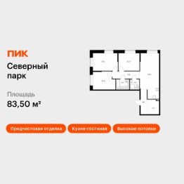 Продаётся 3-комн. квартира площадью 83,5 кв.м на 1 этаже 10 этажного дома (Корпус 1, Секция 1) проекта ПИК Северный парк. Светлый просторный подъезд на уровне земли, функциональная планировка, большие окна, предчистовая отделка.
