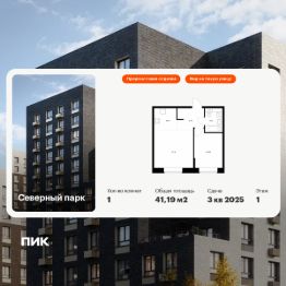 Продаётся 1-комн. квартира площадью 41,19 кв.м на 1 этаже 10 этажного дома (Корпус 1, Секция 3) проекта ПИК Северный парк. Светлый просторный подъезд на уровне земли, функциональная планировка, большие окна, предчистовая отделка.